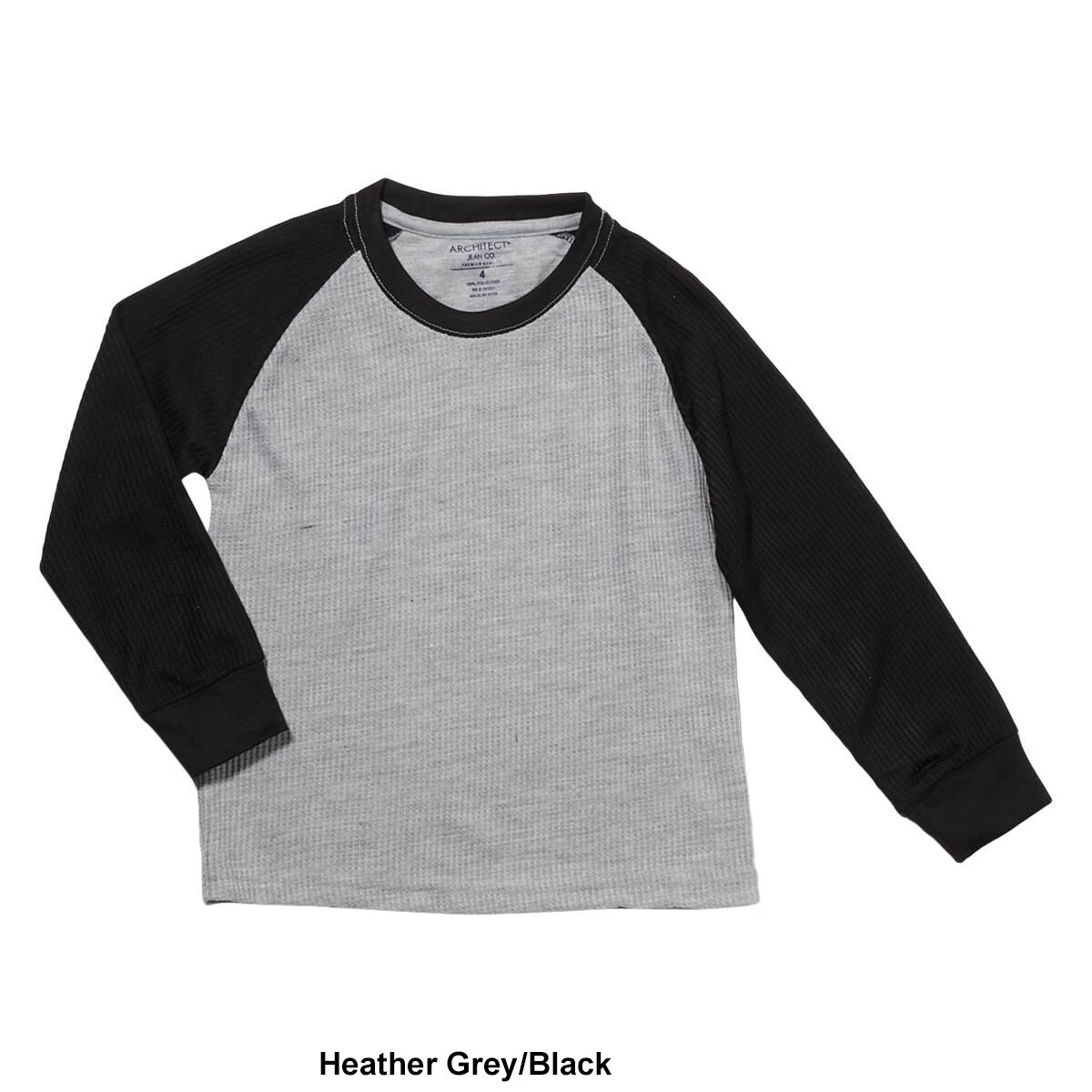 Give him a trendy everyday style this season with this Boys (4-7) Architect® Jean Co. raglan thermal top. The long sleeve thermal top features a soft waffle knit fabric and color block raglan sleeves.