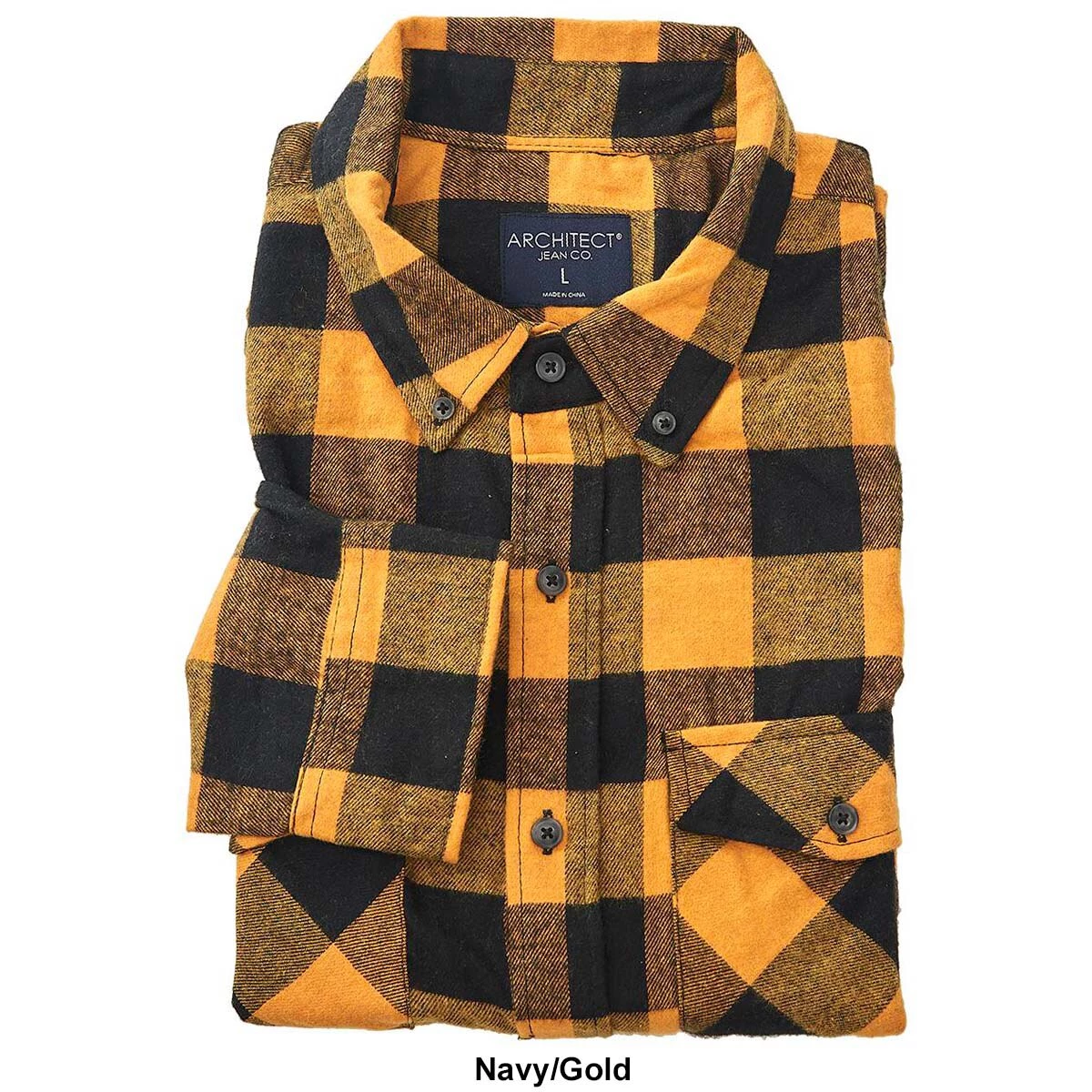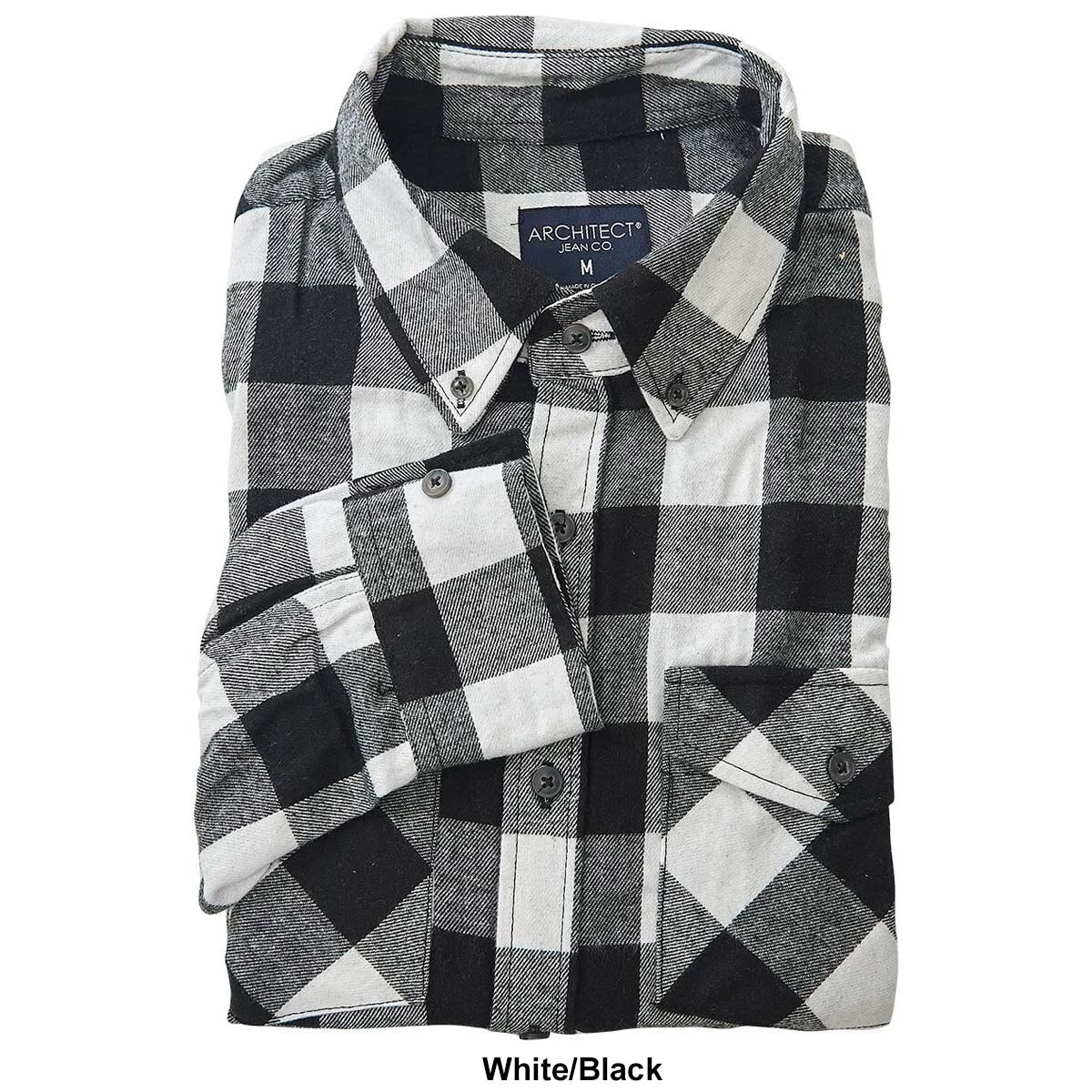 Update your wardrobe for the season with this casual and comfy Young Mens Architect® Jean Co. checkered plaid flannel shirt. The long sleeve shirt features a full button closure, two chest pockets, button cuffs, and a stylish checkered plaid print.