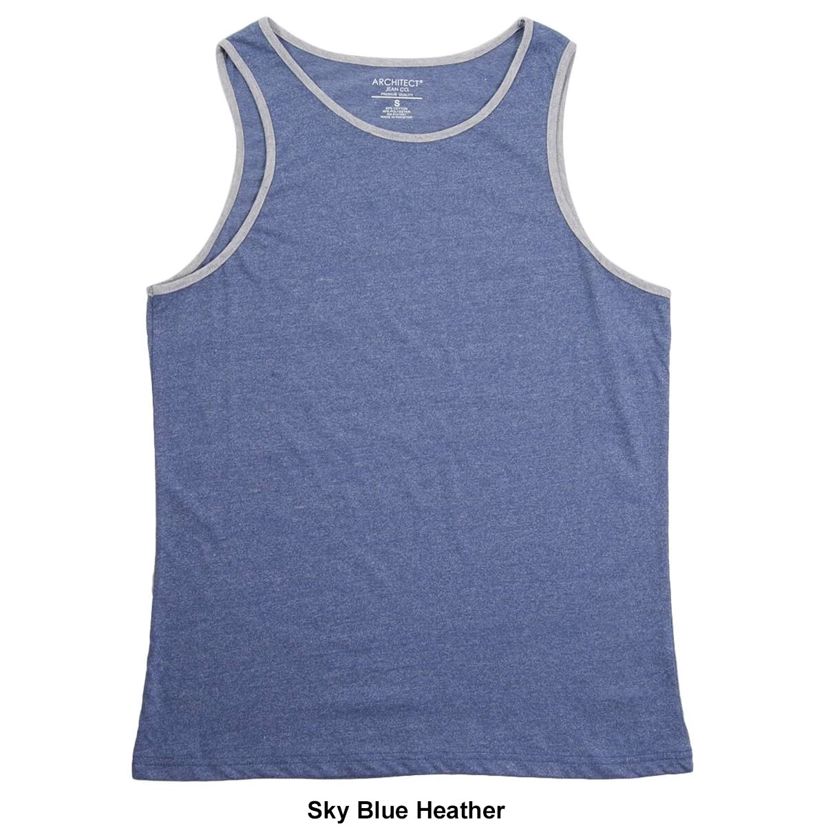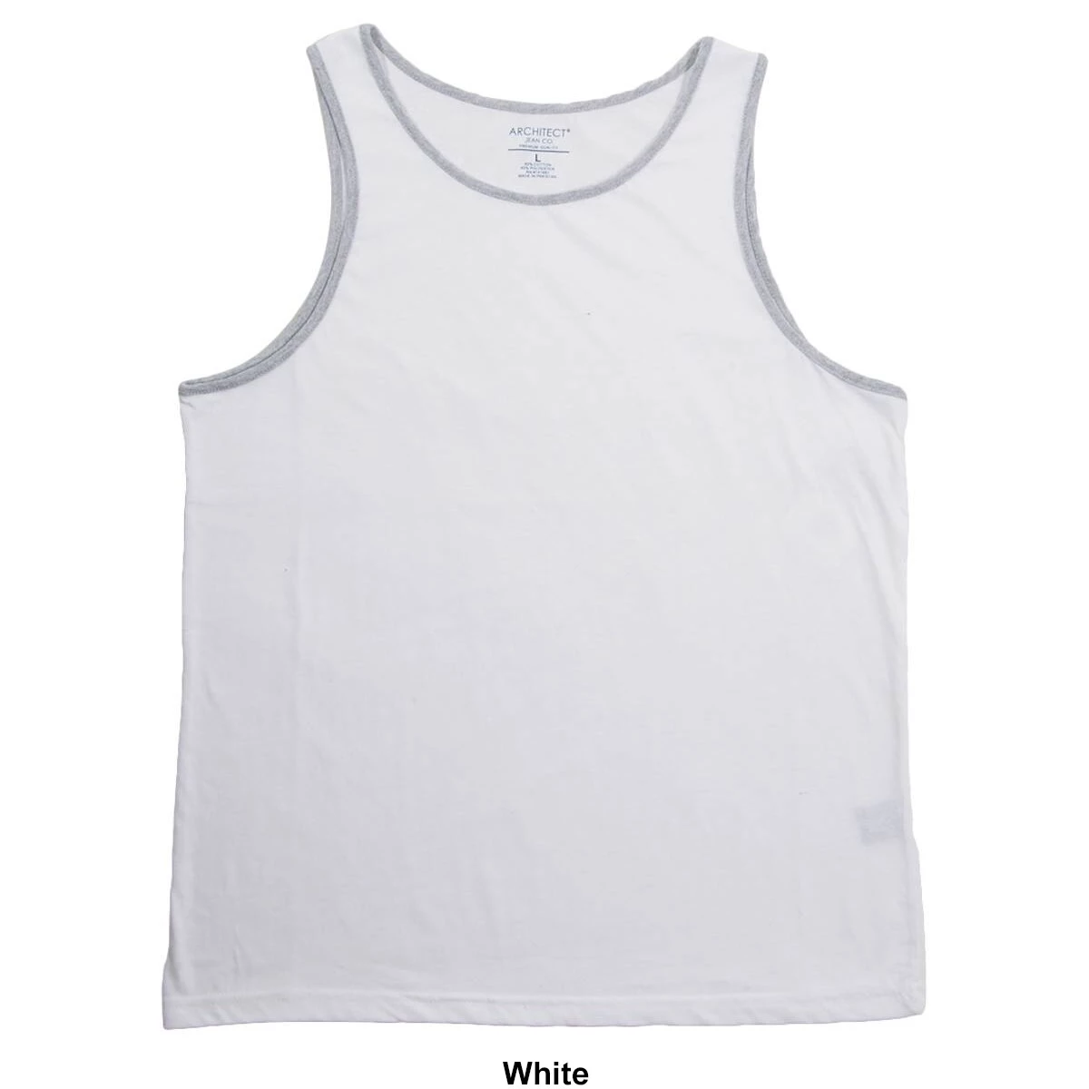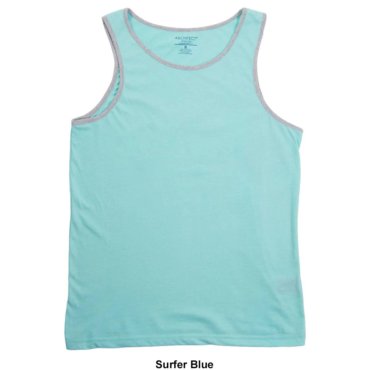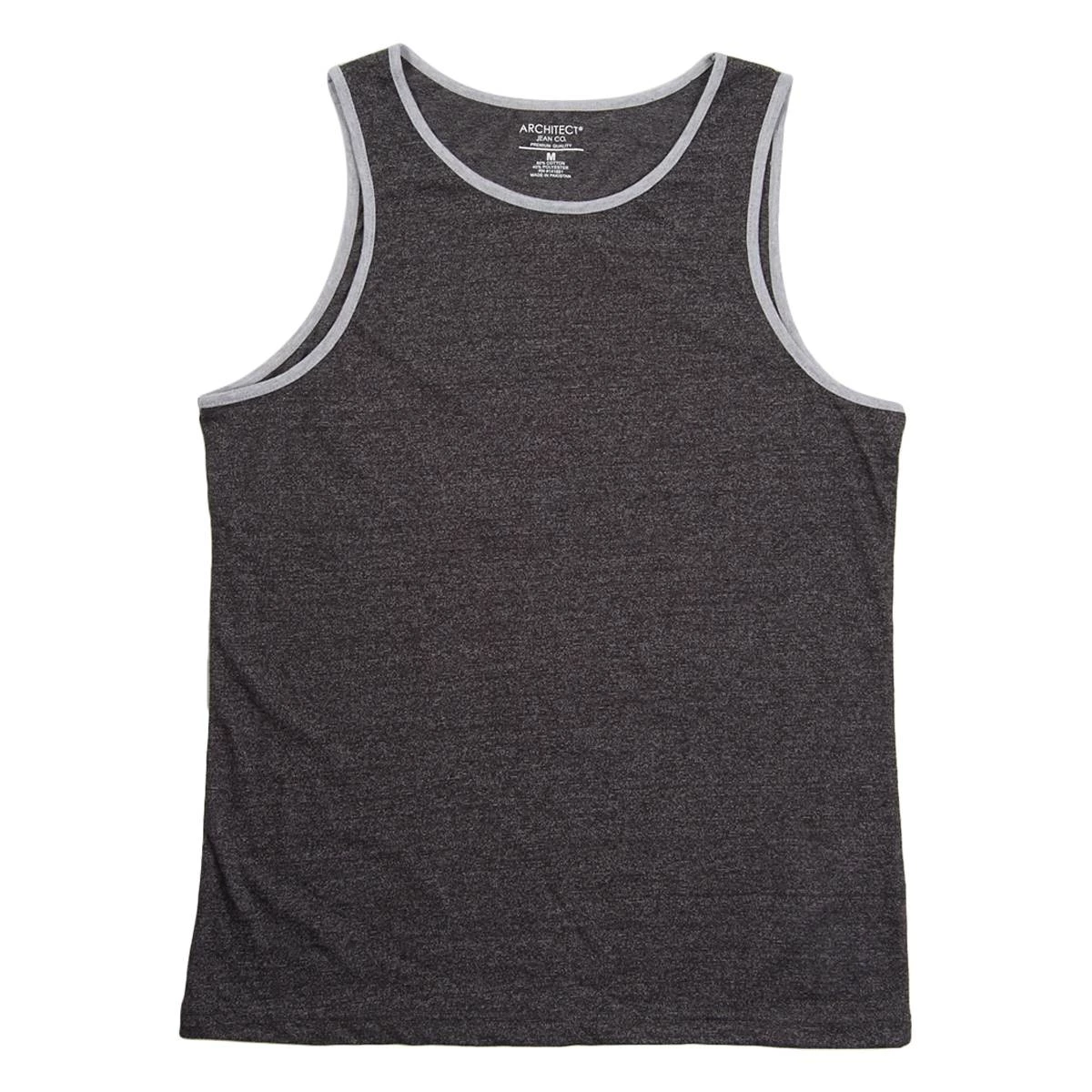 Stay looking cool for the season wearing this Young Mens Architect® Jean Co. ringer tank top. The tank features a round neckline and contrasting trim.