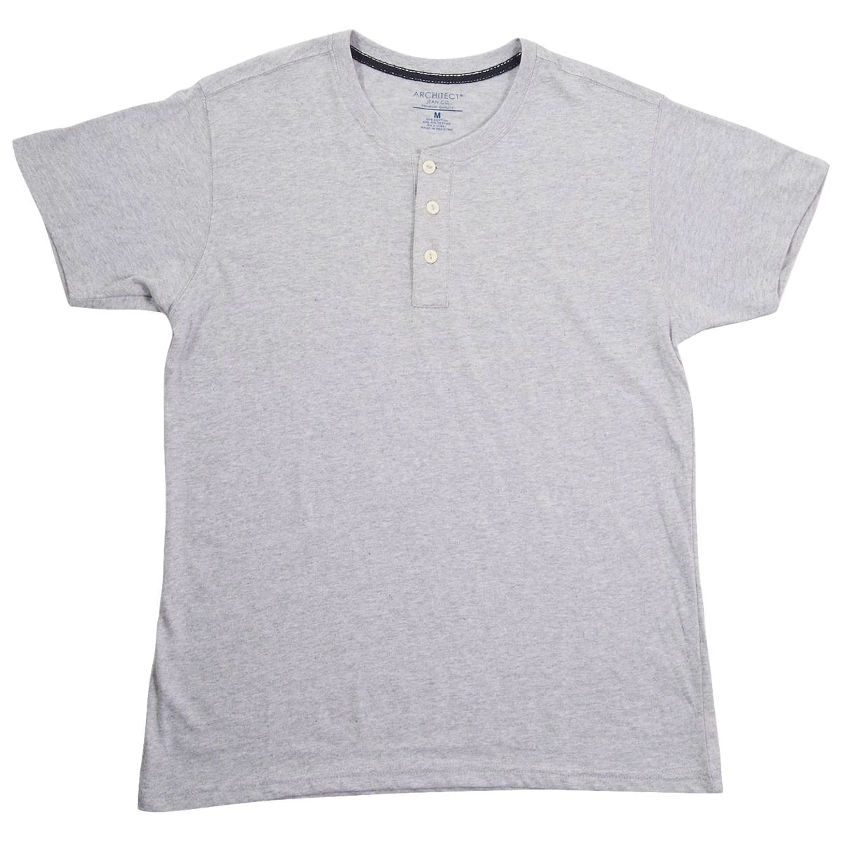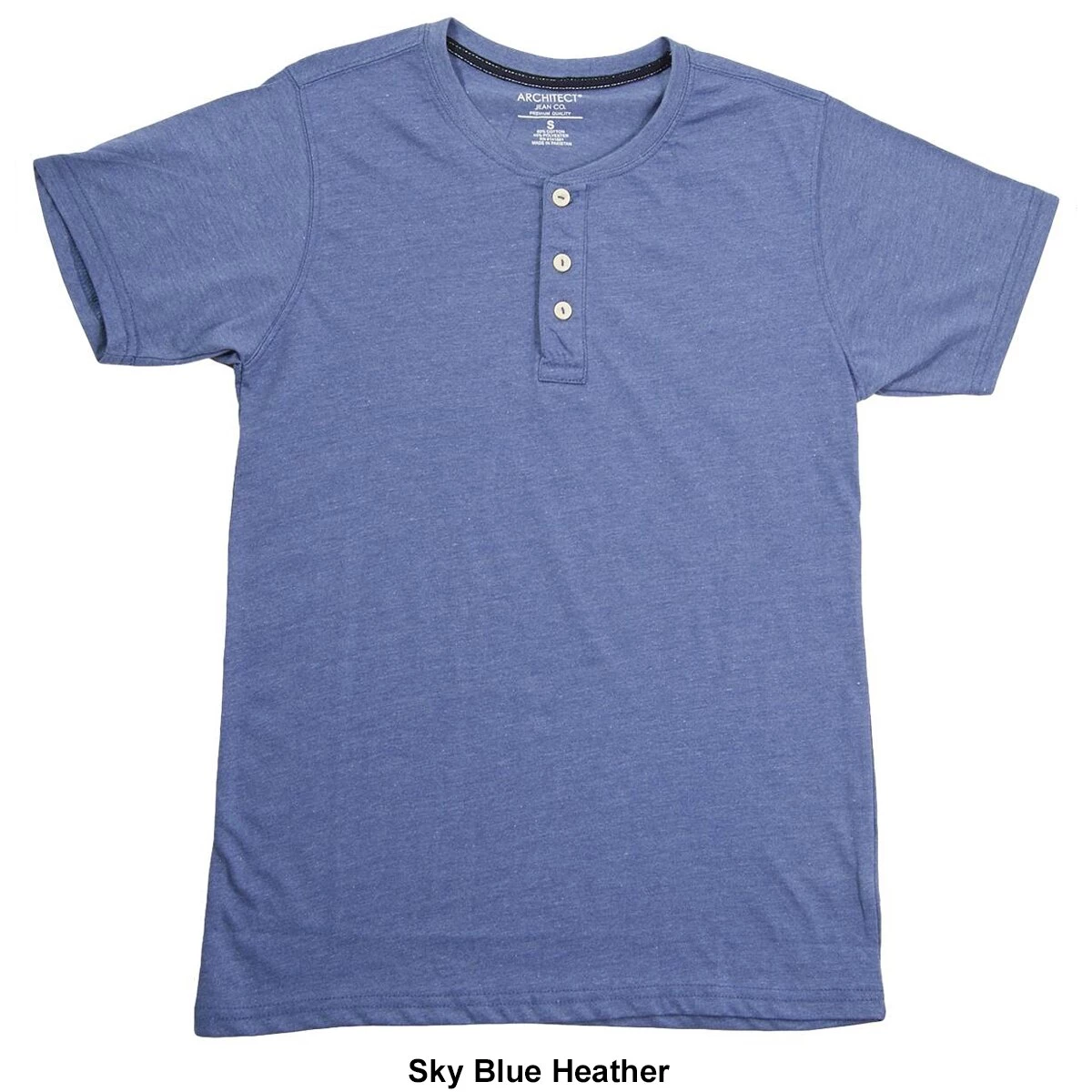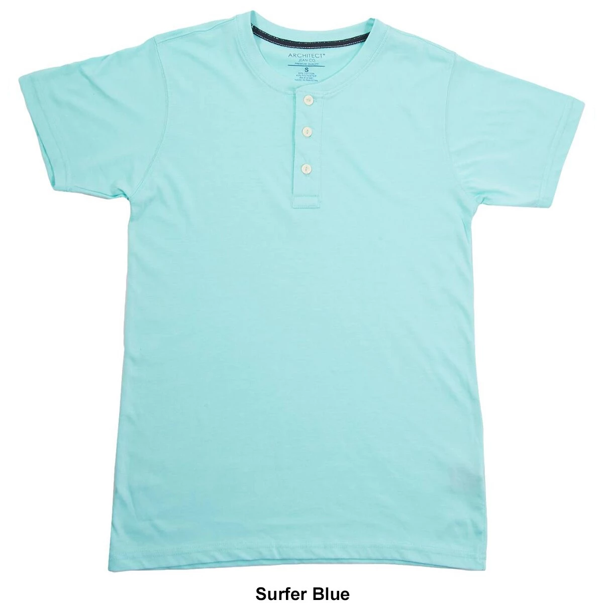 Add to your basic look with this Young Mens Architect® Jean Co. short sleeve henley tee. The short sleeve tee features a crew neckline and a three-button closure
