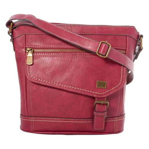 This buckle accented B.O.C Amherst crossbody will keep you organized. Providing asymmetrical front zip pockets, top zip closure, adjustable shoulder strap, and interior zip and slip pockets for extra space.