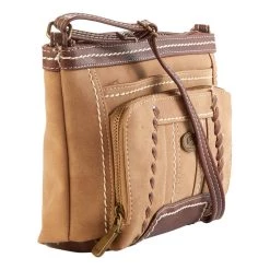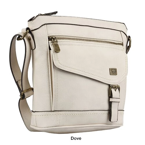 B.O.C. Amherst solid crossbody features a front flap pocket with snap closure, one exterior zipper pocket, main zipper closure, interior organizational storage and adjustable strap.