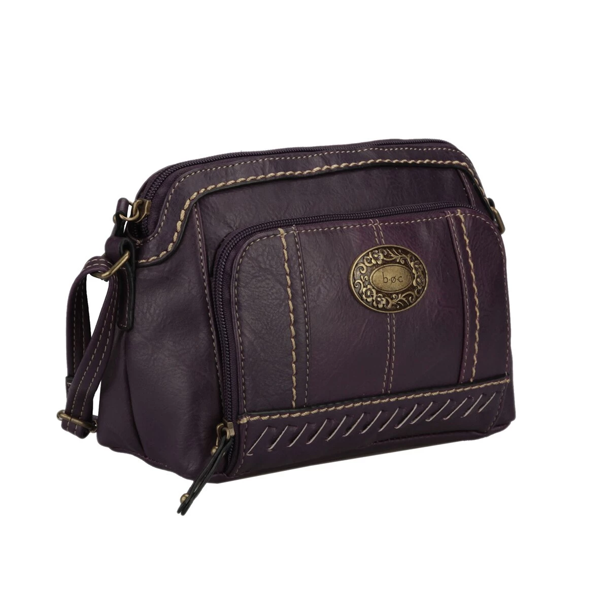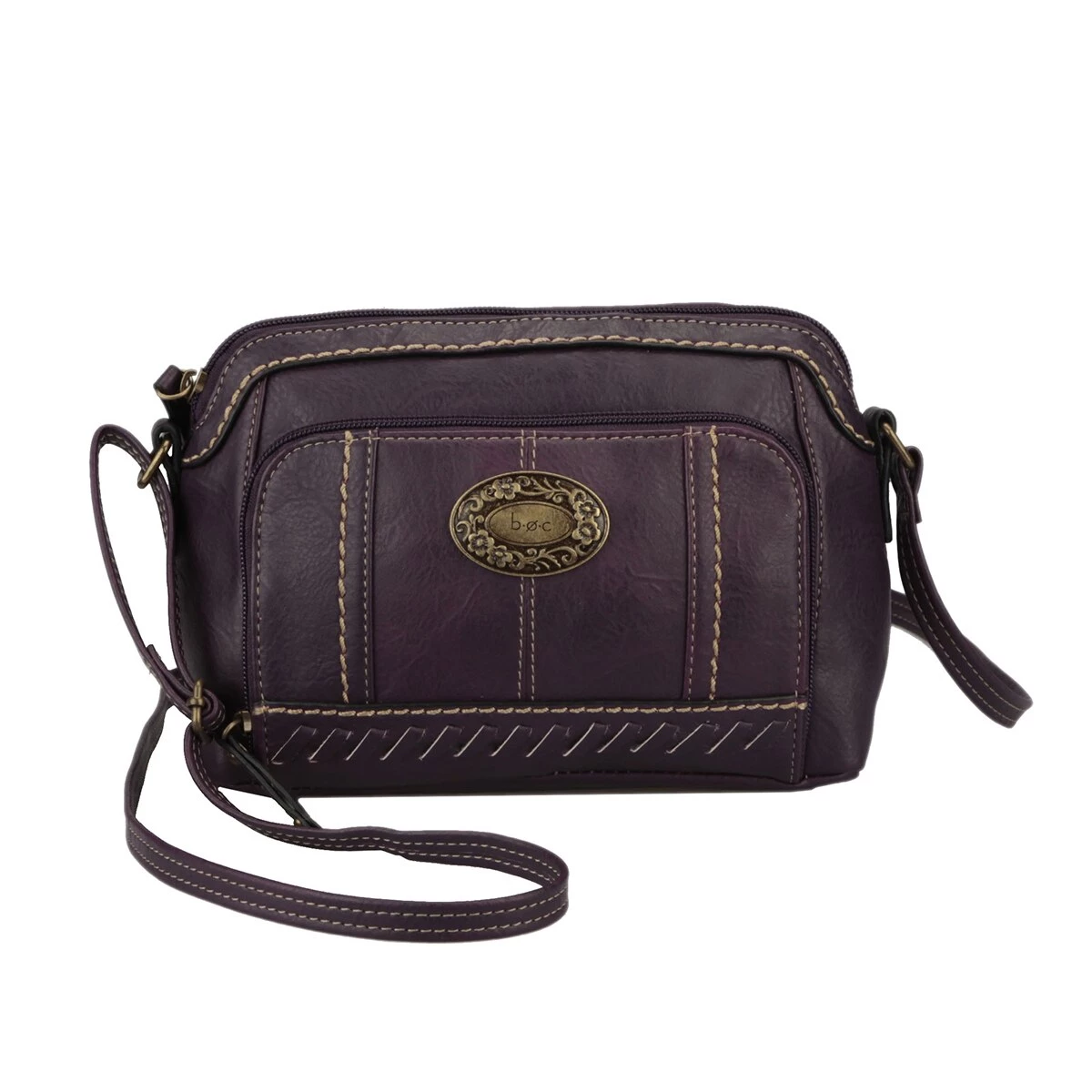 This B.O.C. mini crossbody with whipstitch detail lets you enjoy any adventure in style. Features a front zip organizer pocket, back slip pocket, adjustable shoulder strap, zip closure, and interior zip and slip pockets.