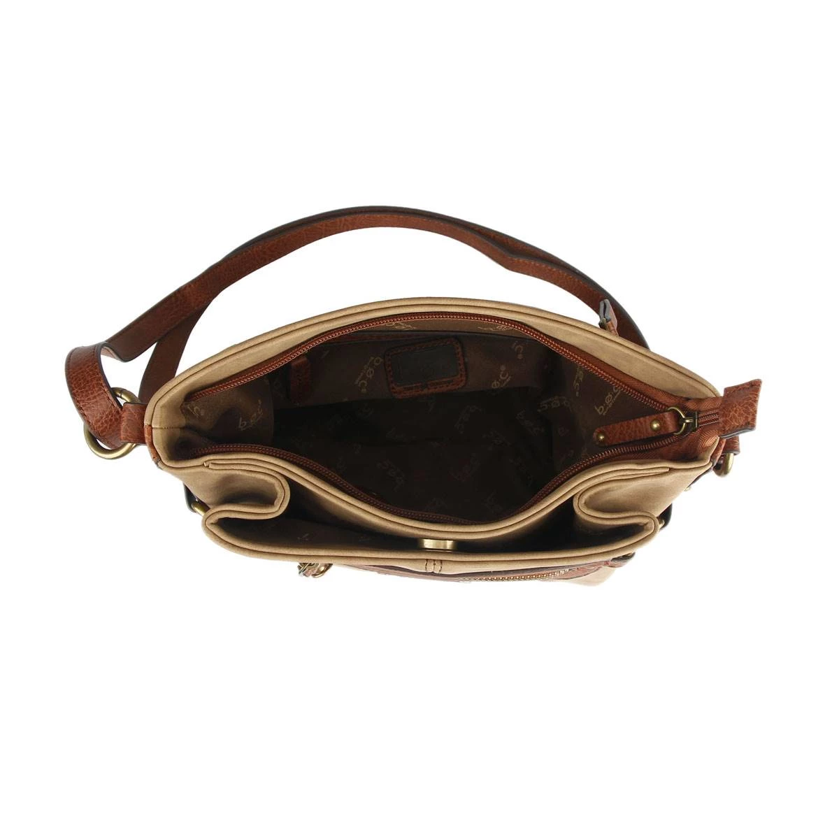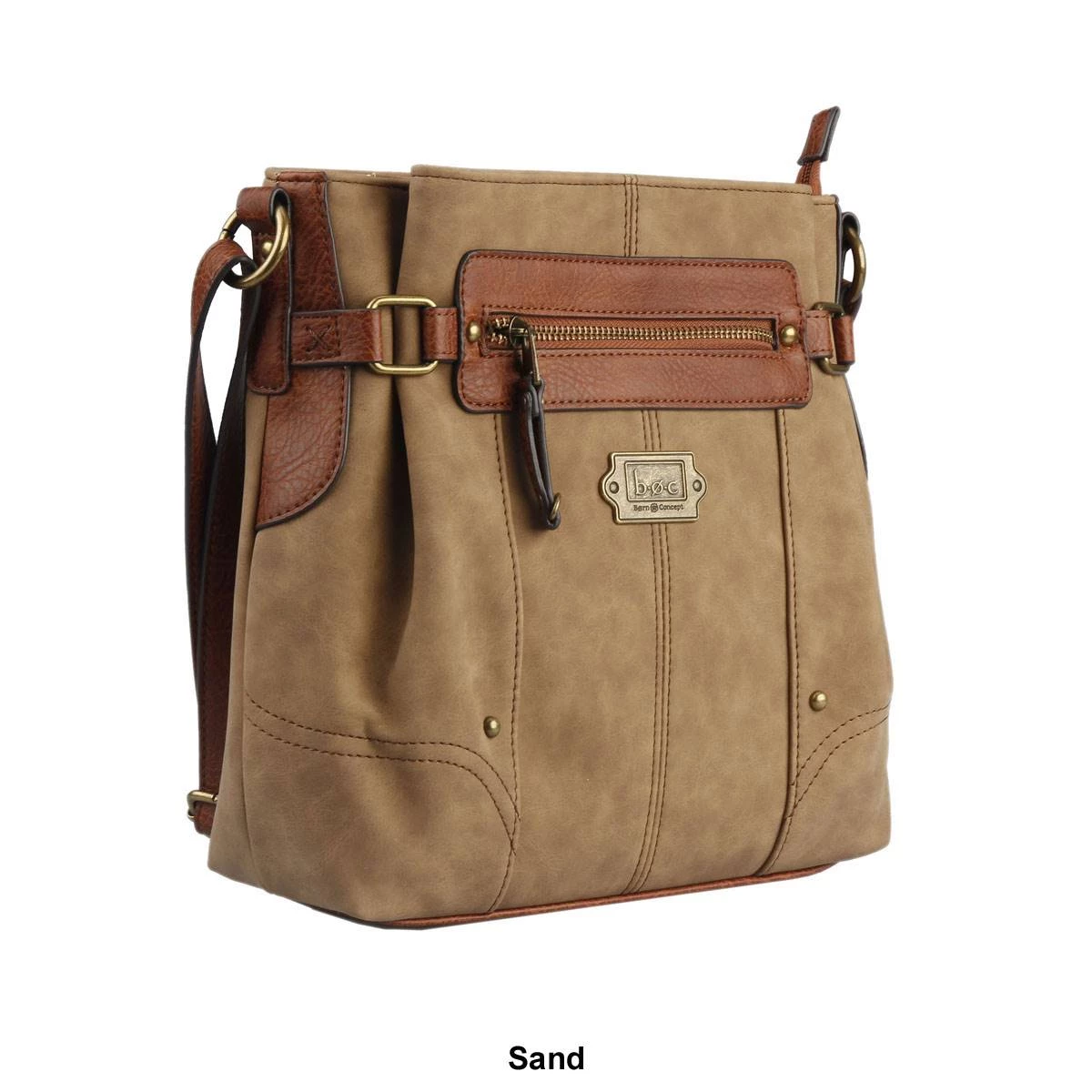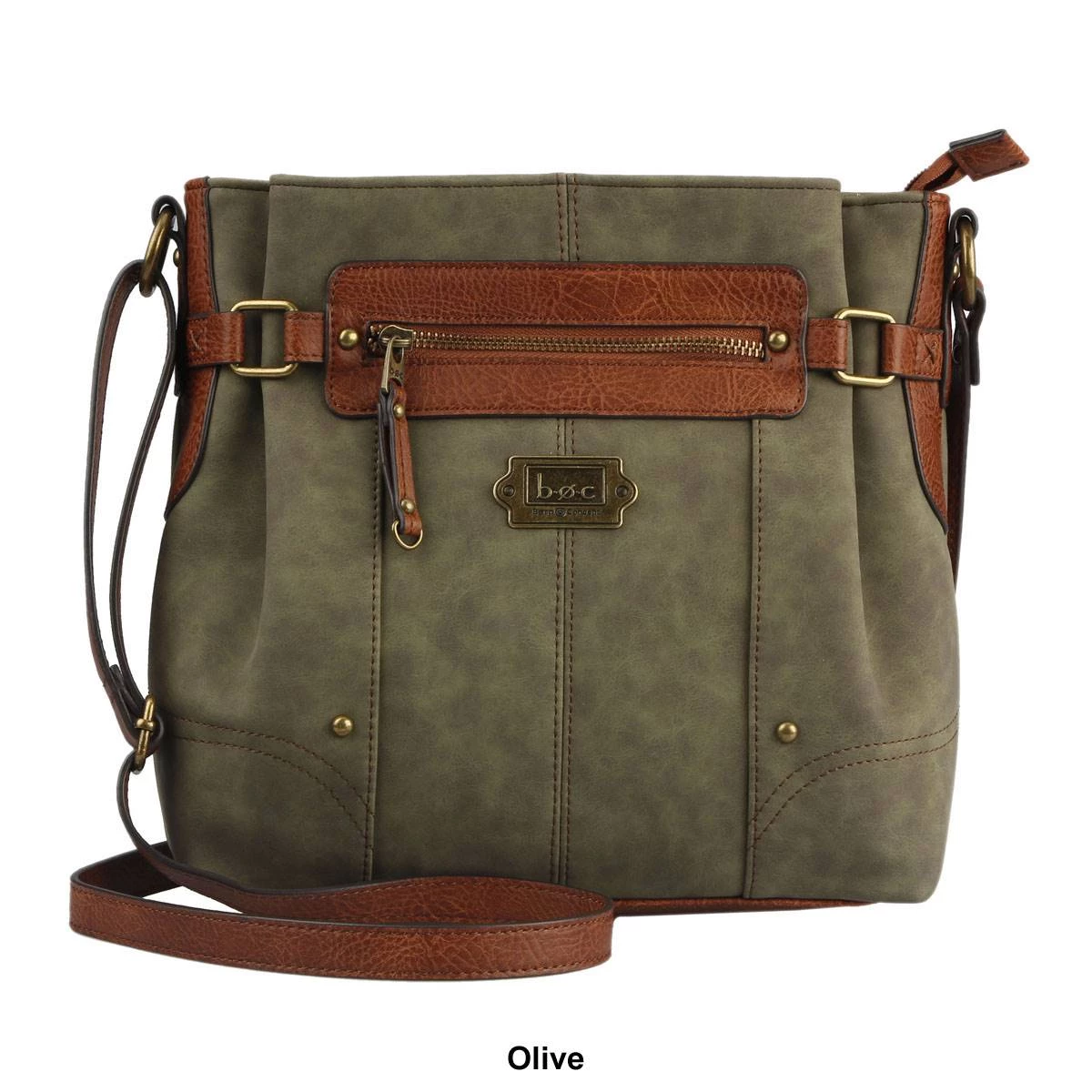 Stay handsfree in style carrying this B.O.C. McCammon crossbody with deerskin, pleating, and buckle details. This solid bag includes a top zip closure, front and back zip pocket, a front magnetic snap closure compartment, and three interior pockets.