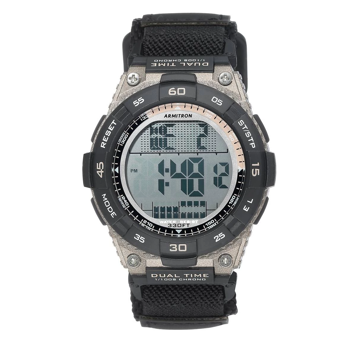 This Mens Armitron black digital chronograph watch adds a touch of class to your look. This watch features quartz movement and a water resistance up to 330ft.