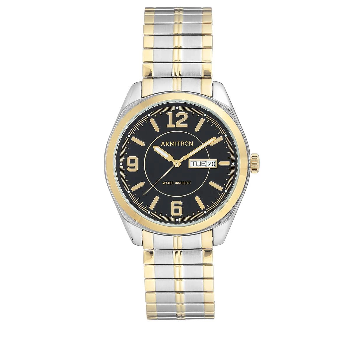 This Mens Armitron stainless steel two-tone expansion watch with date window adds a touch of class to your look. The watch features a water resistance up to 50m and a day/date calendar.