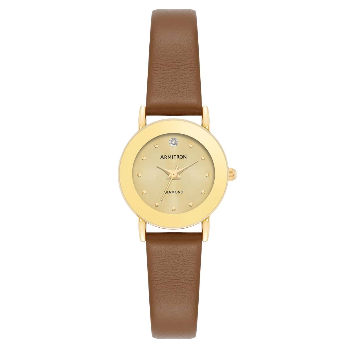 A timepiece that embodies casual elegance with a genuine honey brown leather strap and champagne dial with a diamond accent.