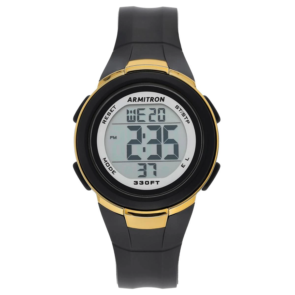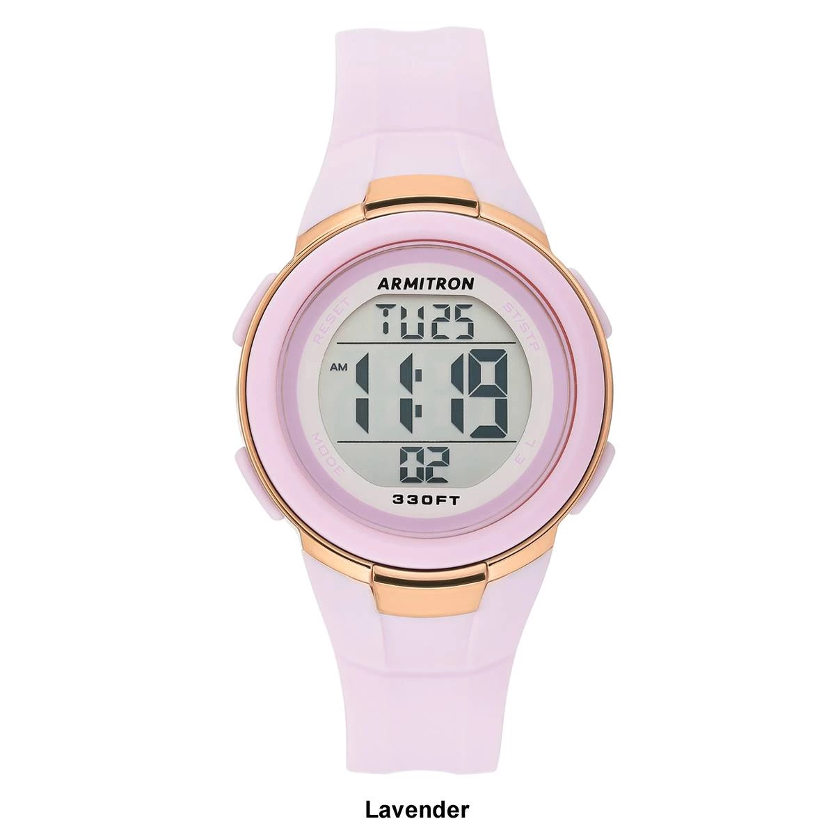 Keep the time with this Womens Armitron® digital chronograph watch. Features include goldtone accents in an 8.3 inch length and a buckle closure.Limited Manufacturer’s Warranty.