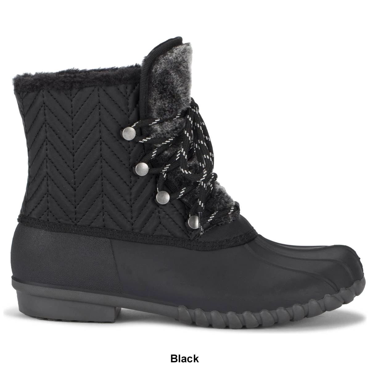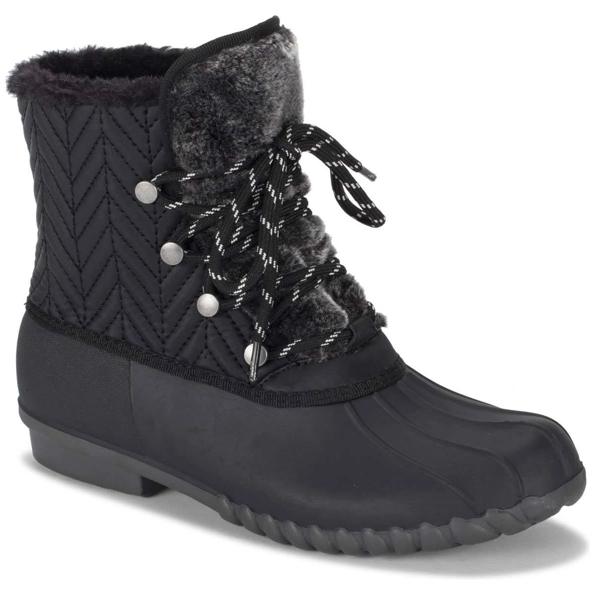 A fashionable duck boot perfect for anything, Flash by BareTraps® will keep you moving fast. The button detailing and front lacing will keep your foot secure and add a hint of glamour. Water-resistant so you stay dry, a treaded sole for control and a soft cushioned lining to keep you comfortable every step, these boots are for you!