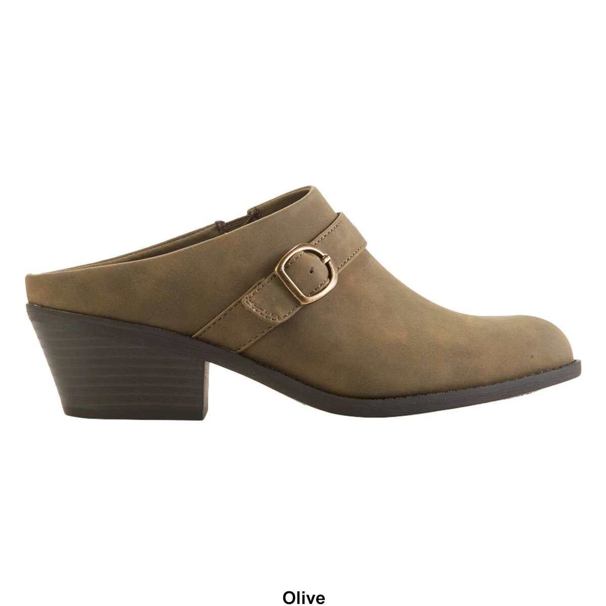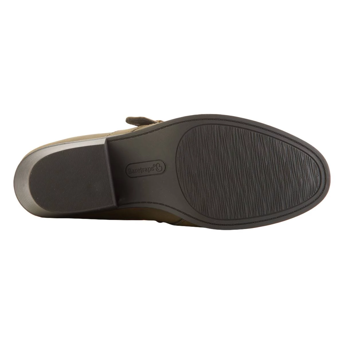 Step into the season in style and comfort with the Womens BareTraps® Jessica nubuck mule. With a nubuck finish, buckle detail, and low heel, this slip on is sure to give you all day comfort.