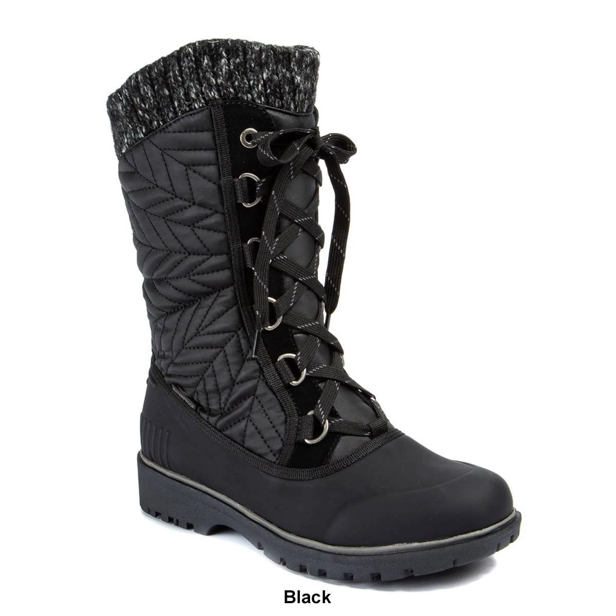 Winter weather doesn’t stand a chance with these Womens BareTraps® Stark Waterproof Winter Boots. Thermal-rated and waterproof, you’ll sail through the winter season in warmth and comfort. Features like a lace-up front, faux shearling lining, and sweater detail at the cuff make this style extra fun.
