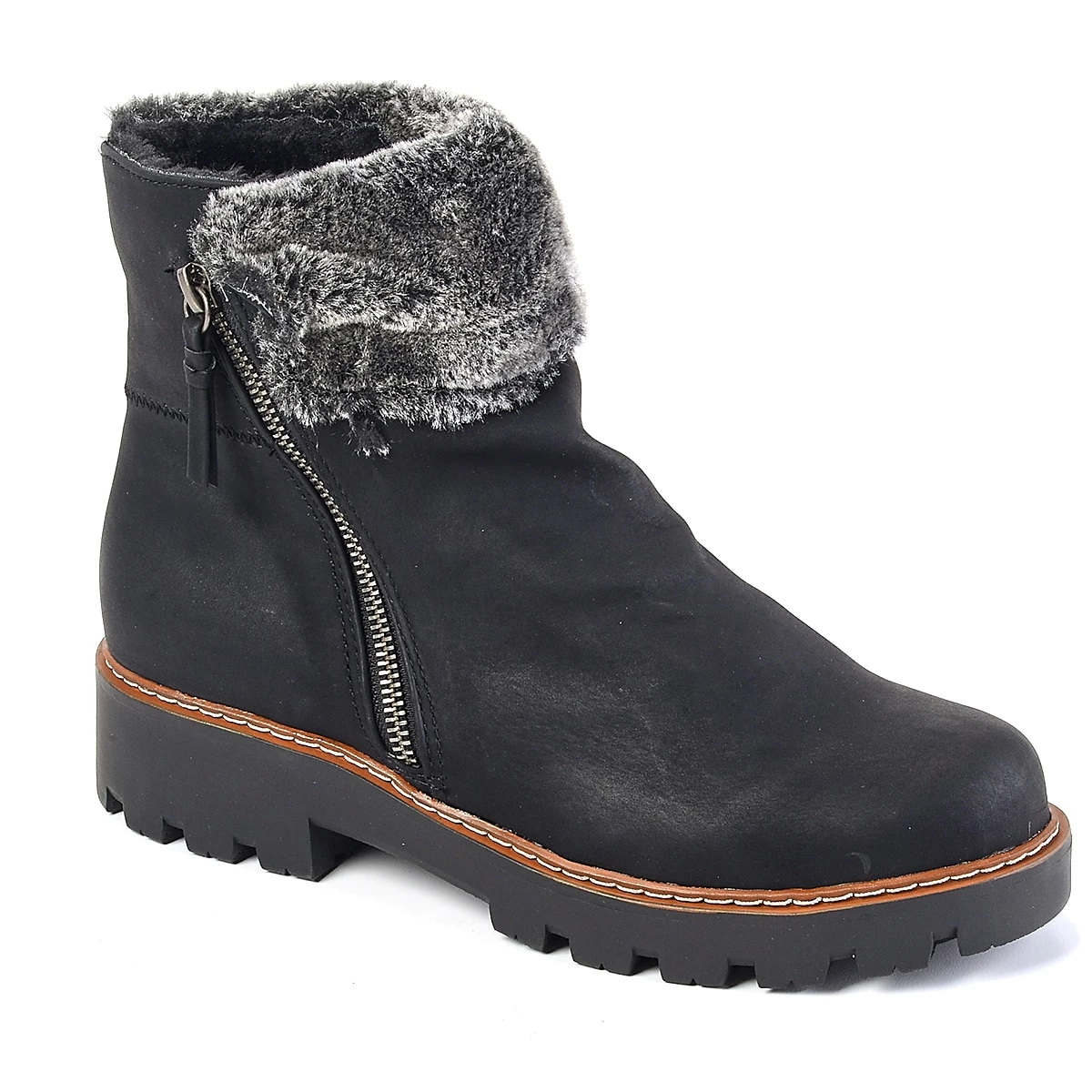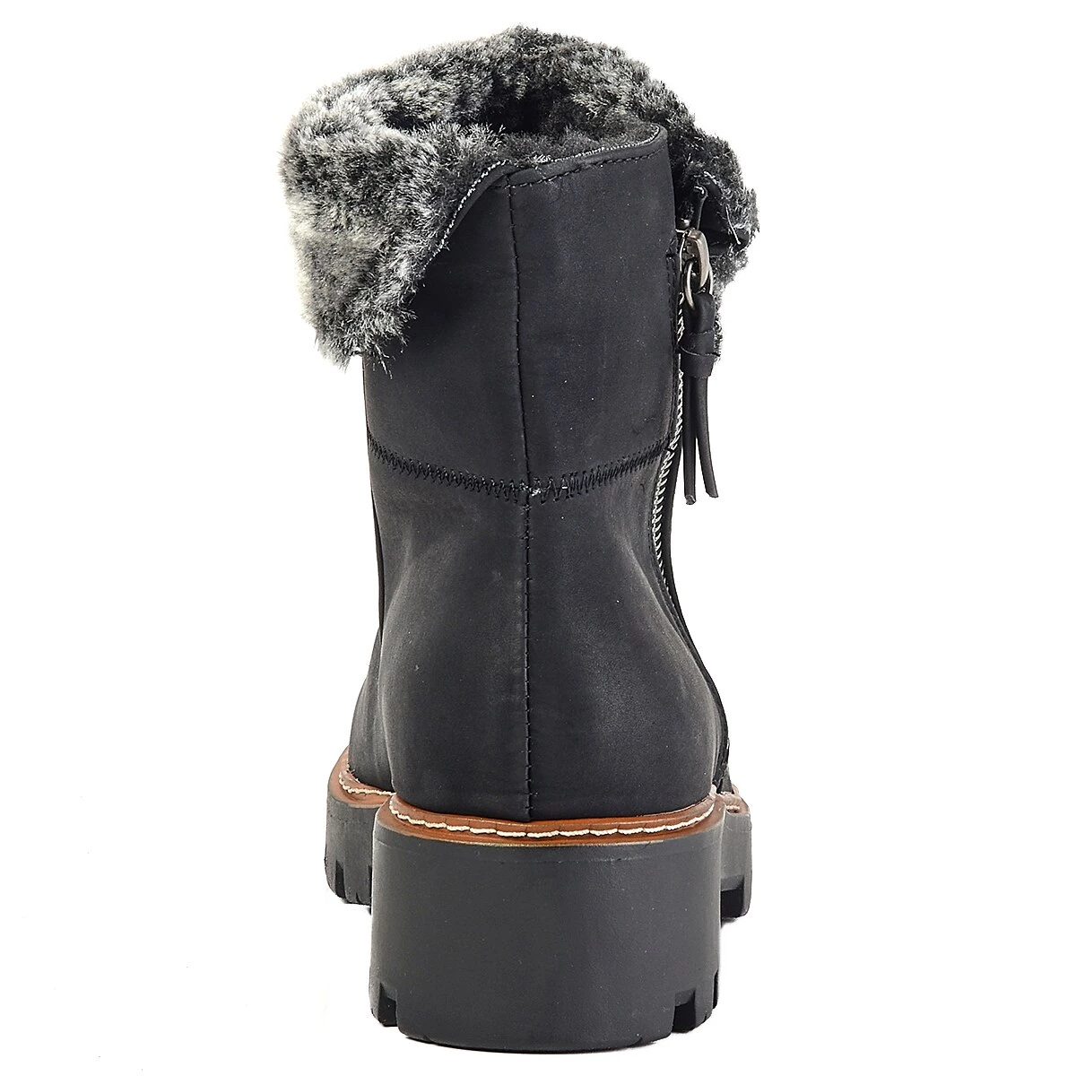 Keep your feet dry and warm in the Womens BareTraps® Westry in Brady polyurethane ankle boots. Featuring water resistant design, asymmetrical faux fur cuff, zip up closure, and a soft finish.