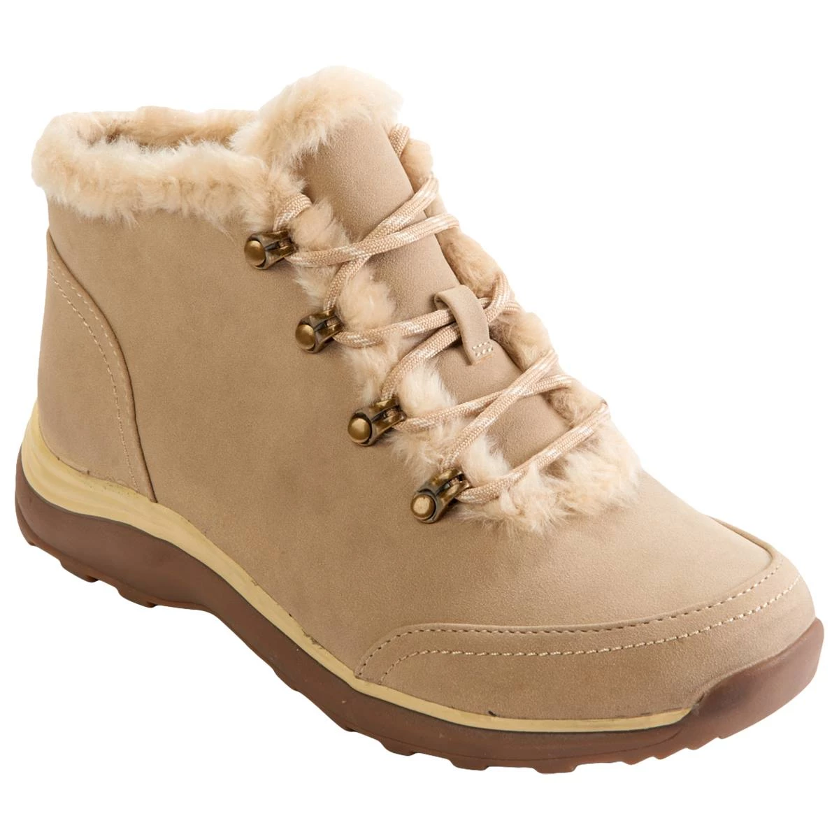These Womens BareTraps® Yada hiking boots feature a lace up design, faux fur lining, and treaded sole for traction. Get ready for the cold weather this year in these outdoorsy boots.